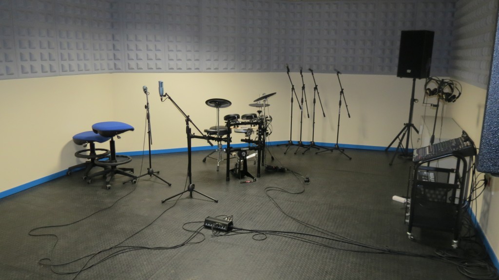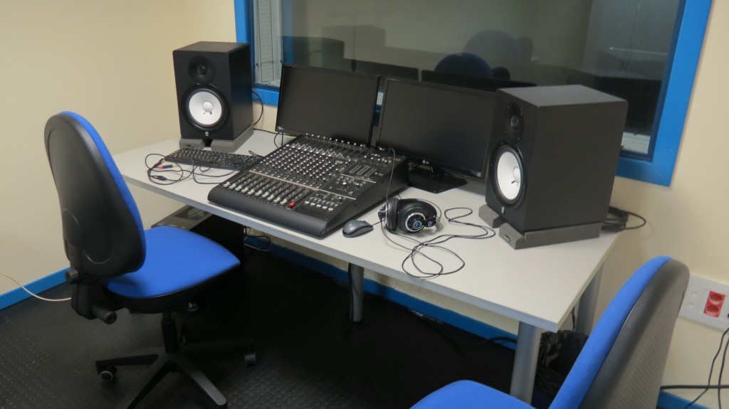 Instalación insonorizada y equipada con mesa de mezclas digital, monitores de estudio, ordenador con tarjeta de sonido profesional, microfonía y conexiones con el local de ensayos. Está destinado a la realización de talleres formativos y para el uso, previa solicitud, de los grupos participantes.