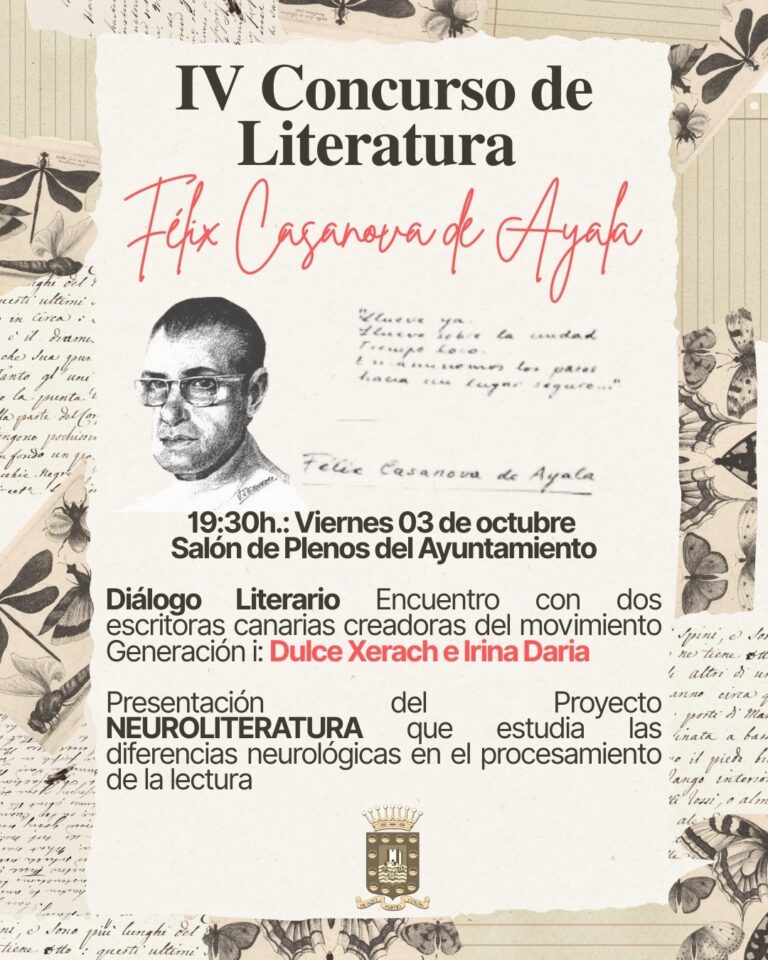 Creadoras del movimiento denominado ‘Generación i’, las dos autoras canarias compartirán este punto de encuentro literario que servirá para dialogar sobre sus respectivas trayectorias y analizar las nuevas tecnologías en el proceso creativo. Además, presentarán el proyecto de «Neuroliteratura» que estudia, entre otras cuestiones, las diferencias neurológicas en el procesamiento de la lectura, desde la comprensión, la empatía y la memoria hasta la capacidad sanadora de la literatura terapéutica.